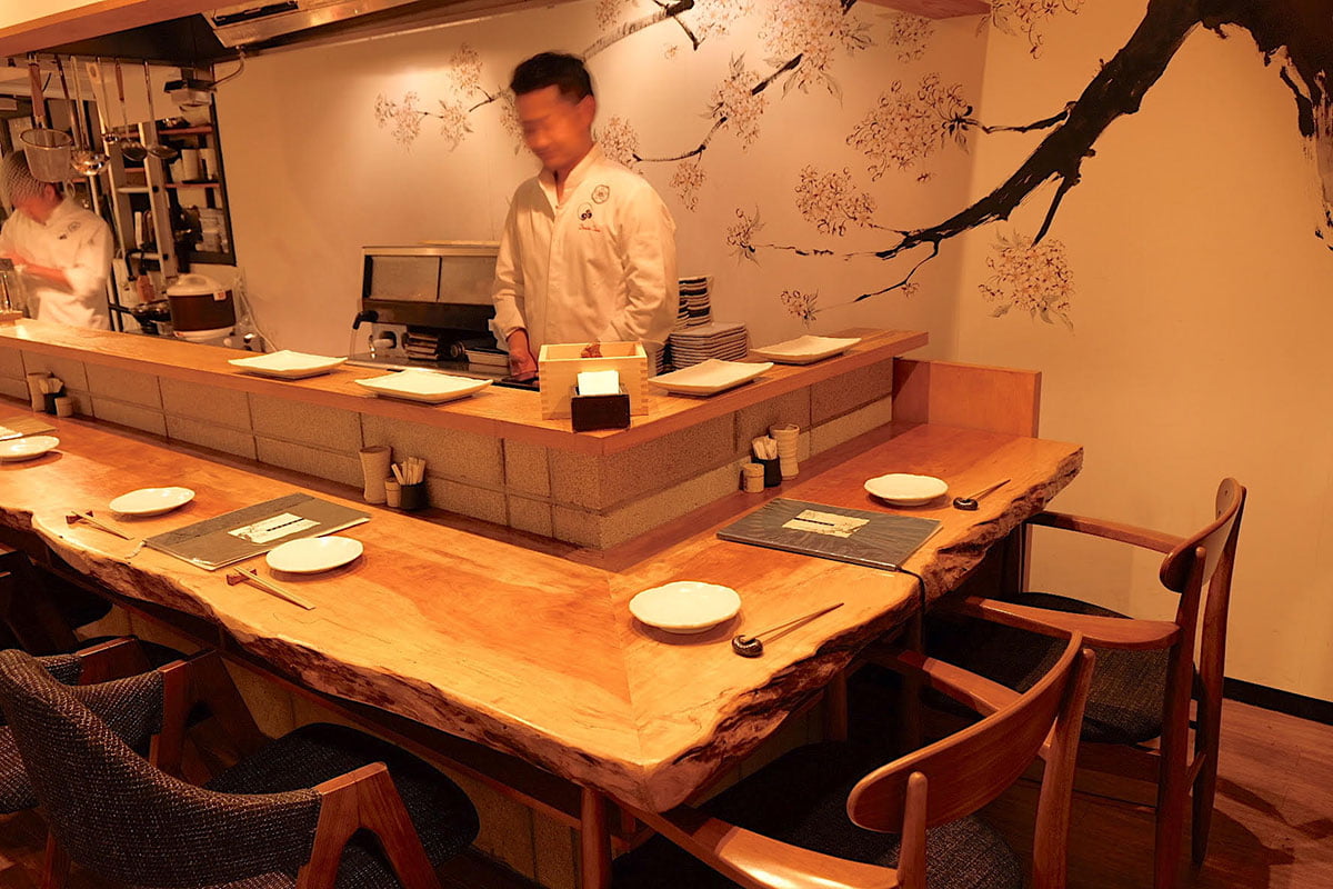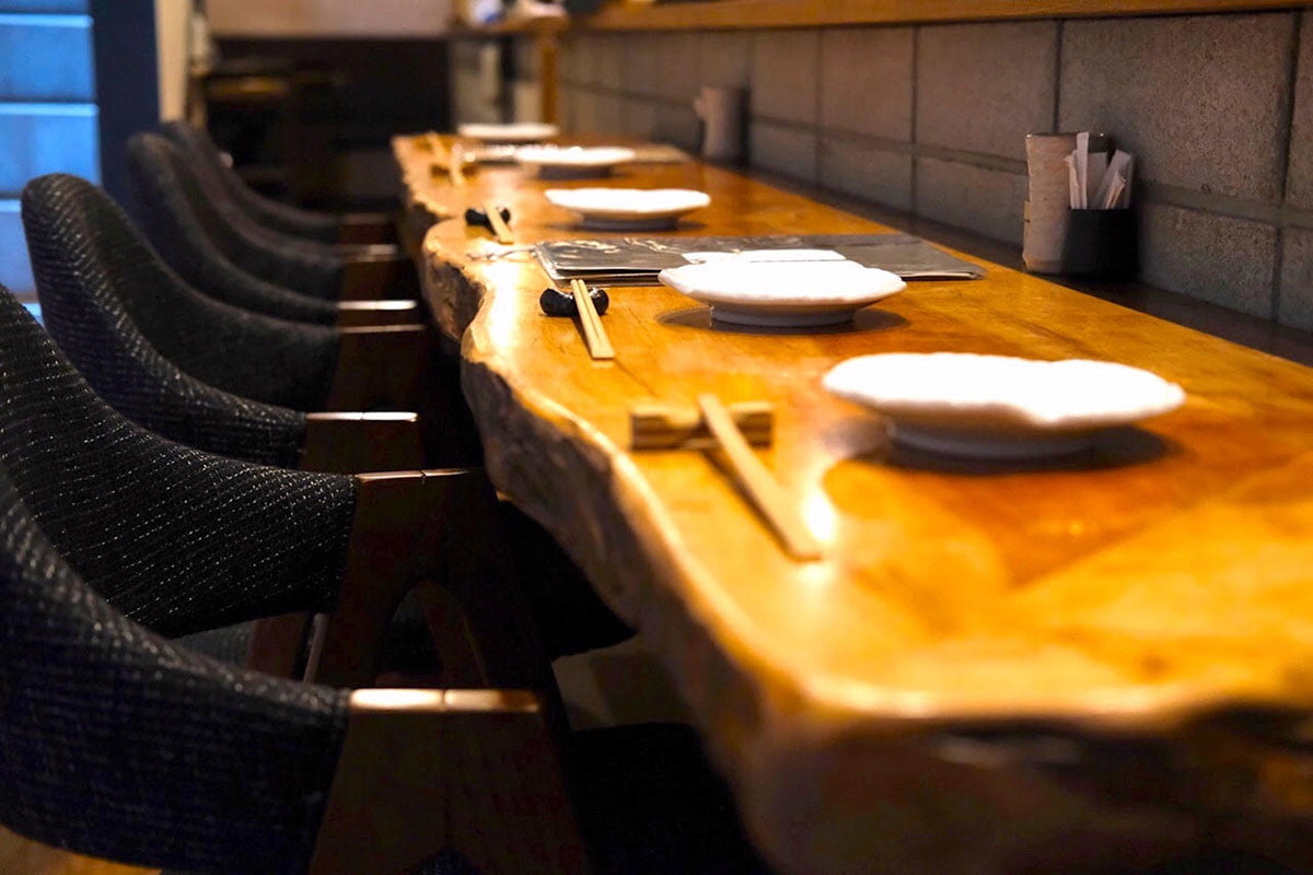 店内はカジュアルに木とコンクリートの融合した内装である。