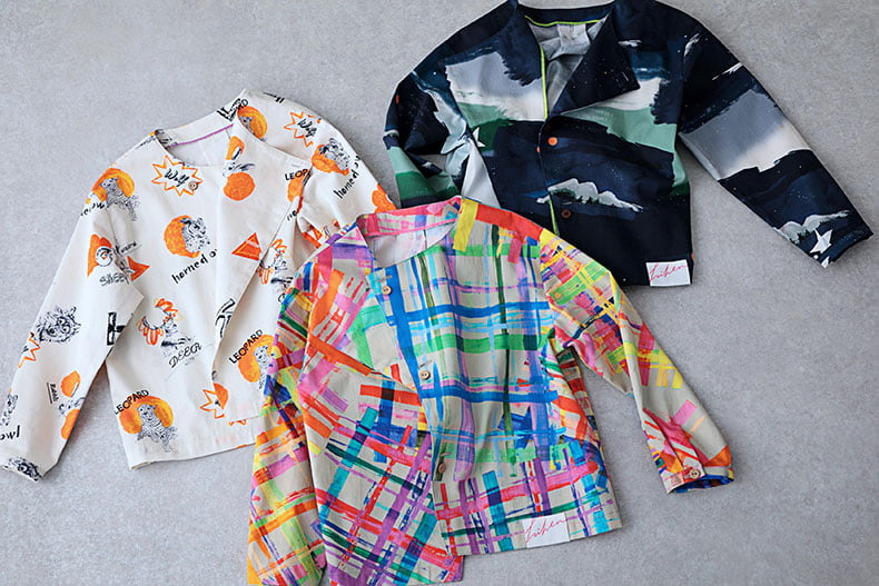 オリジナルのイラストを生地にし、お好きな柄×アイテムで洋服を作っています。